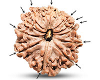 Eleven Mukhi Rudraksha represents Lord Hanuman which is Shiva (Eleven Rudras). This Rudraksha connects the devotee with Harihara, Lord Shiva and Lord Vishnu. Hanuman is the greatest devotee of Lord Ram and this particular Rudraksha gives the blessings from both the Gods. According to ancient texts, the fruit obtained after donating 100 cows is obtained instantaneously by wearing this bead. It helps in deep Meditation and yoga - sadhanas. 11 Mukhi Rudraksha gives extreme self-control of all senses and thus removes all kinds addictions. Lord Indra also rules this rudraksha. This rudraksha along with 10 Mukhi and 12 Mukhi Rudrakshas very commonly used to overcome all types of Vastu Doshas. This combination along with Panch Mukhi Shaligram Shilas if kept at an auspicious place inside the house, all ghosts, evil spirits, black magic, occults runs away from that place. For the devotees of Lord Shiva, it is the most effective and most successful Rudraksha.