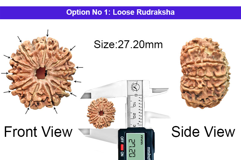 This Ekadasa Rudraksha connects the devotee with Harihara, Lord Shiva and Lord Vishnu. Hanuman is the greatest devotee of Lord Ram and this particular Rudraksha gives the blessings from both the Gods. This Rudraksha also blesses with all pleasures and happiness come to the man who worships Indra and makes him happy. It relieves the inmates from the fear of sudden death and thefts. This represents the 11th Rudra and the associated God of this Rudraksha is Lord Hanuman.