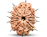 Eleven Mukhi Rudraksha represents Lord Hanuman which is Shiva (Eleven Rudras). This Rudraksha connects the devotee with Harihara, Lord Shiva and Lord Vishnu. Hanuman is the greatest devotee of Lord Ram and this particular Rudraksha gives the blessings from both the Gods. According to ancient texts, the fruit obtained after donating 100 cows is obtained instantaneously by wearing this bead. It helps in deep Meditation and yoga - sadhanas. 11 Mukhi Rudraksha gives extreme self-control of all senses and thus removes all kinds addictions. Lord Indra also rules this rudraksha. This rudraksha along with 10 Mukhi and 12 Mukhi Rudrakshas very commonly used to overcome all types of Vastu Doshas. This combination along with Panch Mukhi Shaligram Shilas if kept at an auspicious place inside the house, all ghosts, evil spirits, black magic, occults runs away from that place. For the devotees of Lord Shiva, it is the most effective and most successful Rudraksha.