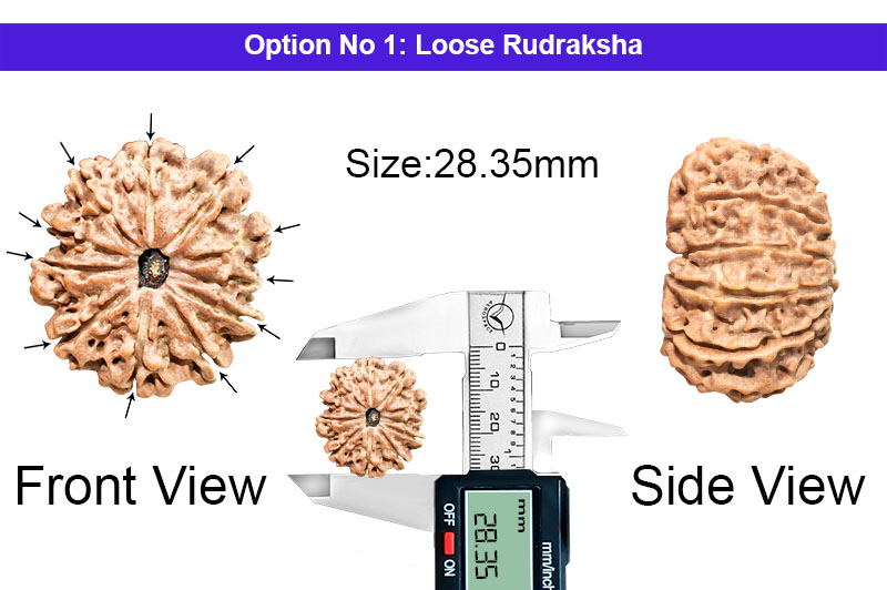 This Ekadasa Rudraksha connects the devotee with Harihara, Lord Shiva and Lord Vishnu. Hanuman is the greatest devotee of Lord Ram and this particular Rudraksha gives the blessings from both the Gods. This Rudraksha also blesses with all pleasures and happiness come to the man who worships Indra and makes him happy. It relieves the inmates from the fear of sudden death and thefts. This represents the 11th Rudra and the associated God of this Rudraksha is Lord Hanuman.