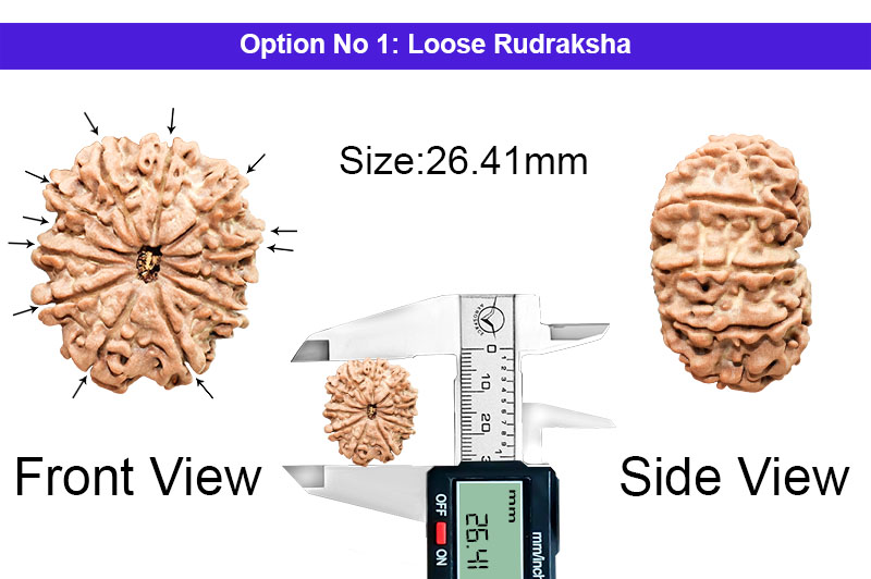 This Ekadasa Rudraksha connects the devotee with Harihara, Lord Shiva and Lord Vishnu. Hanuman is the greatest devotee of Lord Ram and this particular Rudraksha gives the blessings from both the Gods. This Rudraksha also blesses with all pleasures and happiness come to the man who worships Indra and makes him happy. It relieves the inmates from the fear of sudden death and thefts. This represents the 11th Rudra and the associated God of this Rudraksha is Lord Hanuman.