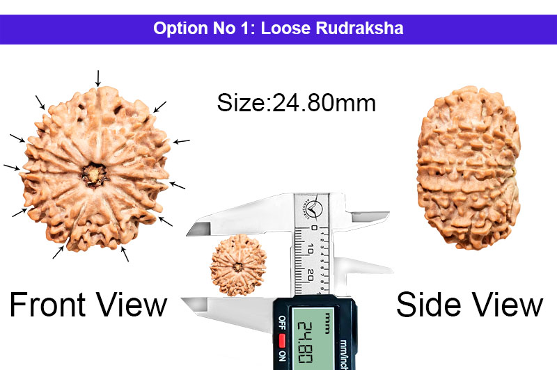 This Ekadasa Rudraksha connects the devotee with Harihara, Lord Shiva and Lord Vishnu. Hanuman is the greatest devotee of Lord Ram and this particular Rudraksha gives the blessings from both the Gods. This Rudraksha also blesses with all pleasures and happiness come to the man who worships Indra and makes him happy. It relieves the inmates from the fear of sudden death and thefts. This represents the 11th Rudra and the associated God of this Rudraksha is Lord Hanuman.