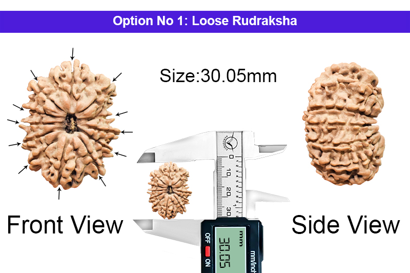 The 12 Mukhi Rudraksha bestows the inmates with immense dignity, respect, name and fame. This Rudraksha has a miraculous quality of extreme protection bestowed on the devotee and gives happiness and material gains and protection from sudden death and accidents. The Ruling Planet of 12 Mukhi Rudrakshas is Sun and it removes negativity, brings peace and the auspicious environment in the house and the workplace and protects the inmates from sudden accidents and thefts. It is also very good for the longevity of the inmates and controls Headache, Heart Disease, Skin Disease, Hiatus of Stomach and other related Problems. 12 Mukhi Rudraksha should be worn with 1 Mukhi, 3 Mukhi, 10 Mukhi, 14 Mukhi and 17 Mukhi Rudraksha to attain Dhyan yoga and Salvation and taking the business fame at the highest heights. This rudraksha balances Vishude, Manipurka and Swadisthana.