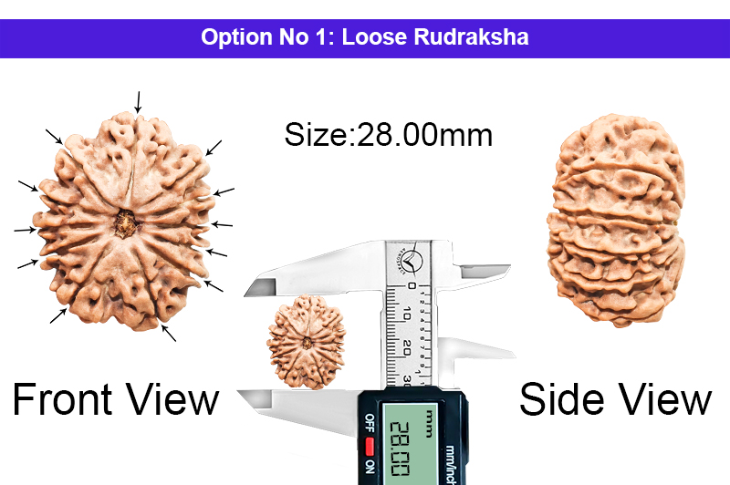 The 12 Mukhi Rudraksha bestows the inmates with immense dignity, respect, name and fame. This Rudraksha has a miraculous quality of extreme protection bestowed on the devotee and gives happiness and material gains and protection from sudden death and accidents. The Ruling Planet of 12 Mukhi Rudrakshas is Sun and it removes negativity, brings peace and the auspicious environment in the house and the workplace and protects the inmates from sudden accidents and thefts. It is also very good for the longevity of the inmates and controls Headache, Heart Disease, Skin Disease, Hiatus of Stomach and other related Problems. 12 Mukhi Rudraksha should be worn with 1 Mukhi, 3 Mukhi, 10 Mukhi, 14 Mukhi and 17 Mukhi Rudraksha to attain Dhyan yoga and Salvation and taking the business fame at the highest heights. This rudraksha balances Vishude, Manipurka and Swadisthana.