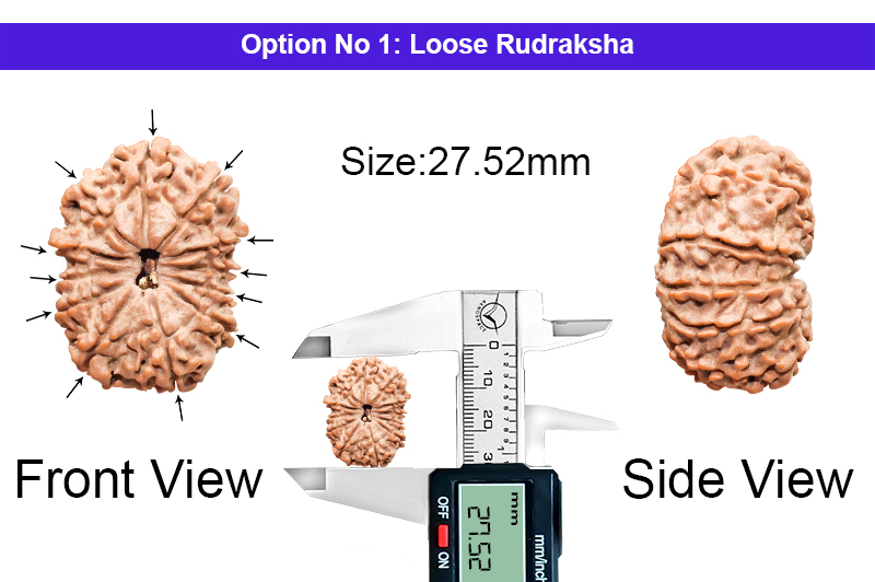 The 12 Mukhi Rudraksha bestows the inmates with immense dignity, respect, name and fame. This Rudraksha has a miraculous quality of extreme protection bestowed on the devotee and gives happiness and material gains and protection from sudden death and accidents. The Ruling Planet of 12 Mukhi Rudrakshas is Sun and it removes negativity, brings peace and the auspicious environment in the house and the workplace and protects the inmates from sudden accidents and thefts. It is also very good for the longevity of the inmates and controls Headache, Heart Disease, Skin Disease, Hiatus of Stomach and other related Problems. 12 Mukhi Rudraksha should be worn with 1 Mukhi, 3 Mukhi, 10 Mukhi, 14 Mukhi and 17 Mukhi Rudraksha to attain Dhyan yoga and Salvation and taking the business fame at the highest heights. This rudraksha balances Vishude, Manipurka and Swadisthana.