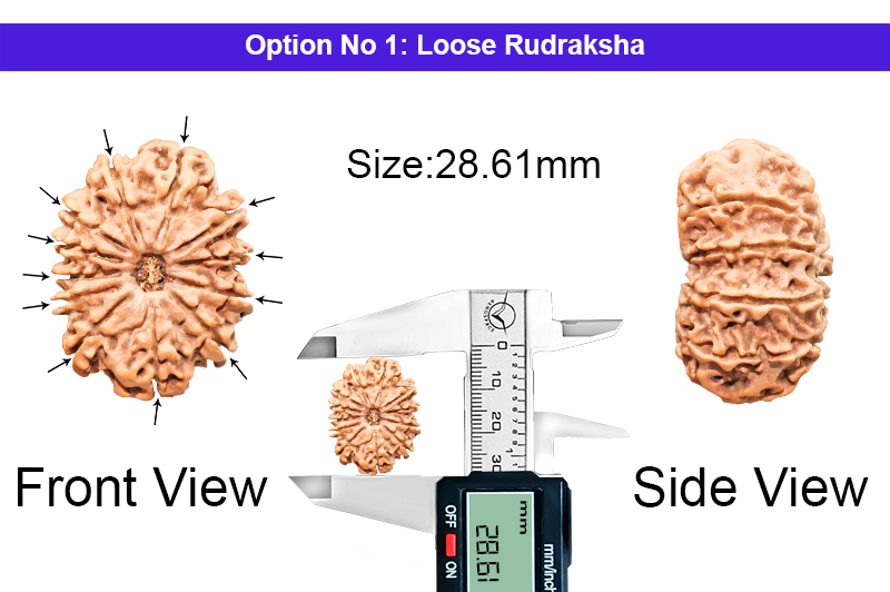 The 12 Mukhi Rudraksha bestows the inmates with immense dignity, respect, name and fame. This Rudraksha has a miraculous quality of extreme protection bestowed on the devotee and gives happiness and material gains and protection from sudden death and accidents. The Ruling Planet of 12 Mukhi Rudrakshas is Sun and it removes negativity, brings peace and the auspicious environment in the house and the workplace and protects the inmates from sudden accidents and thefts. It is also very good for the longevity of the inmates and controls Headache, Heart Disease, Skin Disease, Hiatus of Stomach and other related Problems. 12 Mukhi Rudraksha should be worn with 1 Mukhi, 3 Mukhi, 10 Mukhi, 14 Mukhi and 17 Mukhi Rudraksha to attain Dhyan yoga and Salvation and taking the business fame at the highest heights. This rudraksha balances Vishude, Manipurka and Swadisthana.