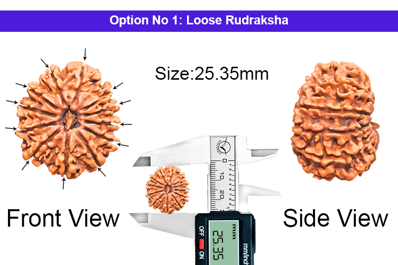 The 12 Mukhi Rudraksha bestows the inmates with immense dignity, respect, name and fame. This Rudraksha has a miraculous quality of extreme protection bestowed on the devotee and gives happiness and material gains and protection from sudden death and accidents. The Ruling Planet of 12 Mukhi Rudrakshas is Sun and it removes negativity, brings peace and the auspicious environment in the house and the workplace and protects the inmates from sudden accidents and thefts. It is also very good for the longevity of the inmates and controls Headache, Heart Disease, Skin Disease, Hiatus of Stomach and other related Problems. 12 Mukhi Rudraksha should be worn with 1 Mukhi, 3 Mukhi, 10 Mukhi, 14 Mukhi and 17 Mukhi Rudraksha to attain Dhyan yoga and Salvation and taking the business fame at the highest heights. This rudraksha balances Vishude, Manipurka and Swadisthana.