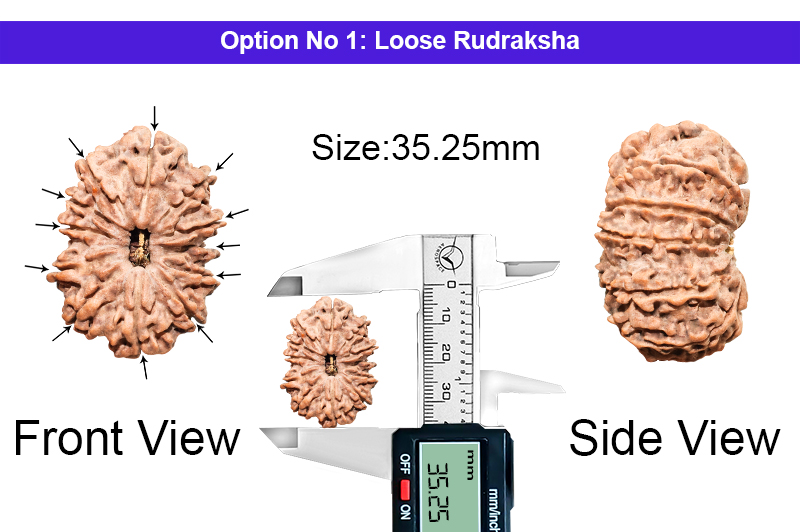 The 12 Mukhi Rudraksha bestows the inmates with immense dignity, respect, name and fame. This Rudraksha has a miraculous quality of extreme protection bestowed on the devotee and gives happiness and material gains and protection from sudden death and accidents. The Ruling Planet of 12 Mukhi Rudrakshas is Sun and it removes negativity, brings peace and the auspicious environment in the house and the workplace and protects the inmates from sudden accidents and thefts. It is also very good for the longevity of the inmates and controls Headache, Heart Disease, Skin Disease, Hiatus of Stomach and other related Problems. 12 Mukhi Rudraksha should be worn with 1 Mukhi, 3 Mukhi, 10 Mukhi, 14 Mukhi and 17 Mukhi Rudraksha to attain Dhyan yoga and Salvation and taking the business fame at the highest heights. This rudraksha balances Vishude, Manipurka and Swadisthana.