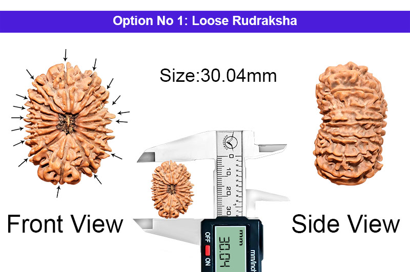 The wearer of Sixteen faced Rudraksha becomes victorious in all his endeavours and reaps happiness and wealth and leads a successful life. When Sati jumped in the fire of the yajna, Lord Shiva became very fierce and then did the Tandava. This Roopa of Lord Shiva is called as Maha Mrityunjaya and in this, even Yama also got scared and went back. So the wearer of this Rudraksha can even turn Yama back and avoid his death. Chanting Maha Mrityunjaya mantra in the morning wearing this Rudraksha sitting in South West corner of the house or workplace and facing the North East will make the wearer fulfil all his wishes and would make him fearless from death and any other calamity.