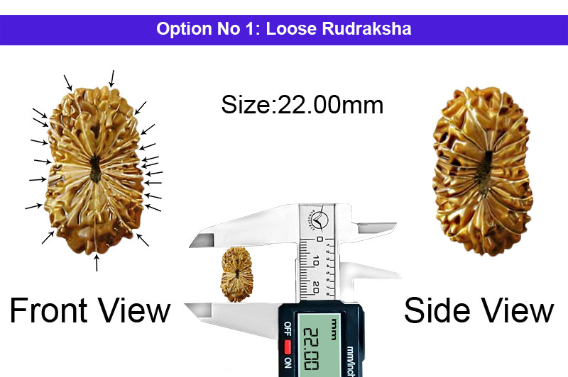 This Rudraksha is Brahma Swarupa . Lord Brahma, the creator Sakshat lives in this Rudraksha. This enhances the creativity, wit, wisdom, judgement, intelligence and tremendous knowledge of the wearer or worshipper. The devotee is treated with great respect and dignity in the society. He becomes the torch bearer and every one follows him with great zeal and enthusiasm. A true leader, philanthropist and a force to reckon with in changing the norms of the society to the better side. It has energies of the nine planets, eight Dikpals (Indra, Varun, Yama, Kuber, Agni, Vayu, Niriti and Ishan) and tridevas (Brahma , Vishnu , Mahesh) . This is highly rare Rudraksha and due to its energies the wearer gets power to achieve almost anything he desires. His all negative Karmas and sins are washed and he collects positive Karmas all through his life. The relationships amongst children, parents, brother and sisters, relatives and colleagues reaches to the peak and the worshipper leads a most satisfying life for the present Janam. The 20 Mukhi Rudraksha directly controls the Sahashara and Vishuda Chakra and Mantra Jap of the Brahma Mantras open these Chakras. The chanting of these mantras balances Sahashara and Vishuda Chakras and takes the Aura of the worshipper to the higher zones of consciousness.