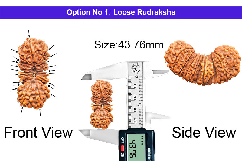 Three naturally joined Rudrakshas are a rare phenomenon of nature and such a bead is called "Tribhagi" or "Trijuti". This bead is also known as "Gauri Paath" and represents "Brahma Vishnu Mahesh" (The Trinity of God). In the Trijuti Rudraksha three beads individually represent Lord Brahma, Lord Vishnu and Lord Mahesh. It is very powerful to give universal appeal and empowers the wearer for great achievements, confidence and makes the wearer invincible. This bead blesses the devotee with tremendous Charisma, attraction and removes all hurdles to facilitate the path of success and contentment to the devotee.Trijuti Rudraksha Mantra