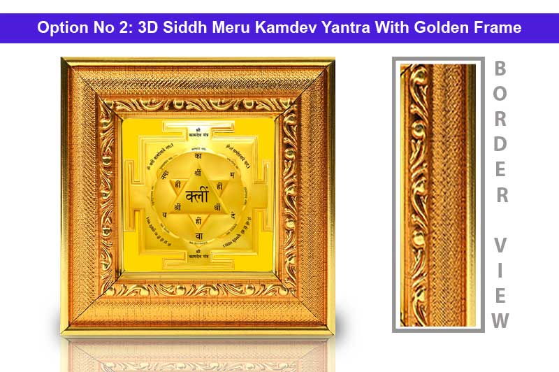 3D Siddh Meru Kamdev Yantra is highly recommended for the people who are seeking love in their life and want to have the love and affection of the desired partner. This yantra is considered to be the best for love and happiness. Kamdev Yantra is worshipped for attraction, happy relationship, charm and beauty. Lord Kamdeva is the God that rules the love emotion and worshipping Kamdev Yantra is leads to enthusiasm, vigor and magnetic charm in personality. This yantra also enhances attraction powers which are helpful for those who wish to charm others.