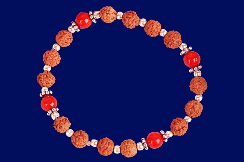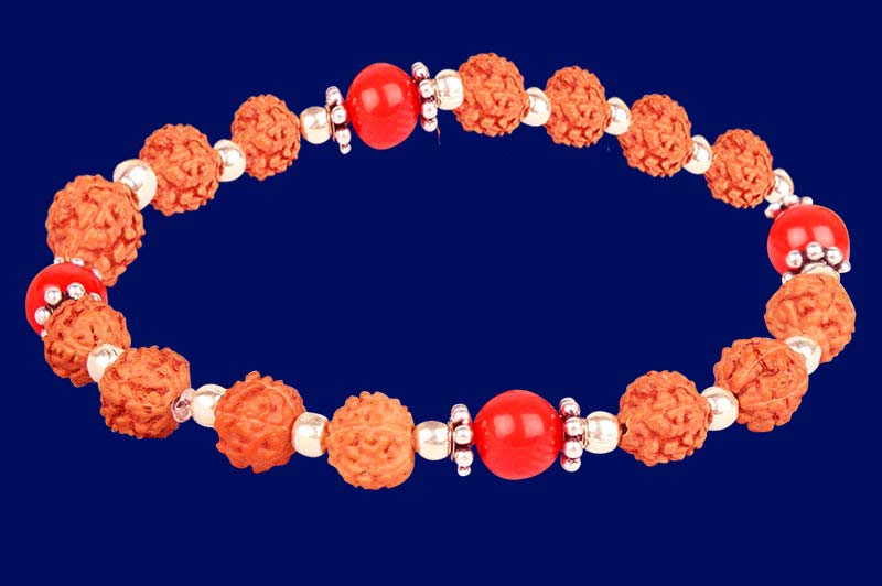 6 Mukhi Java Bracelet With Coral 8mm-RD-BR-6-1013