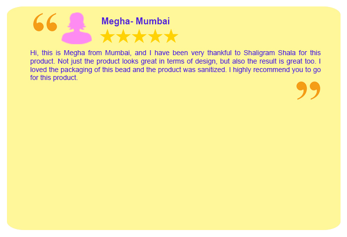 The Shaligram products are delivered to the customers after proper energization & pran pratishtha. Therefore all the devotees are requested to forward their date, time & place of birth while ordering Shaligram Shila, so that the proper energization & pran pratishtha could be done on their names before the dispatch of the Shaligram.