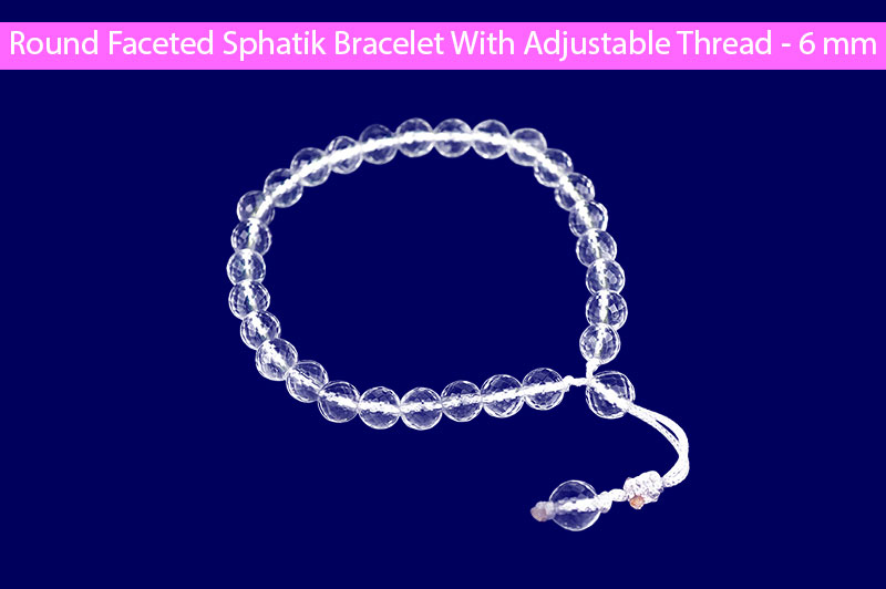 Round Faceted Sphatik Bracelet In Adjustable Thread-4 mm-GMBRCQ005