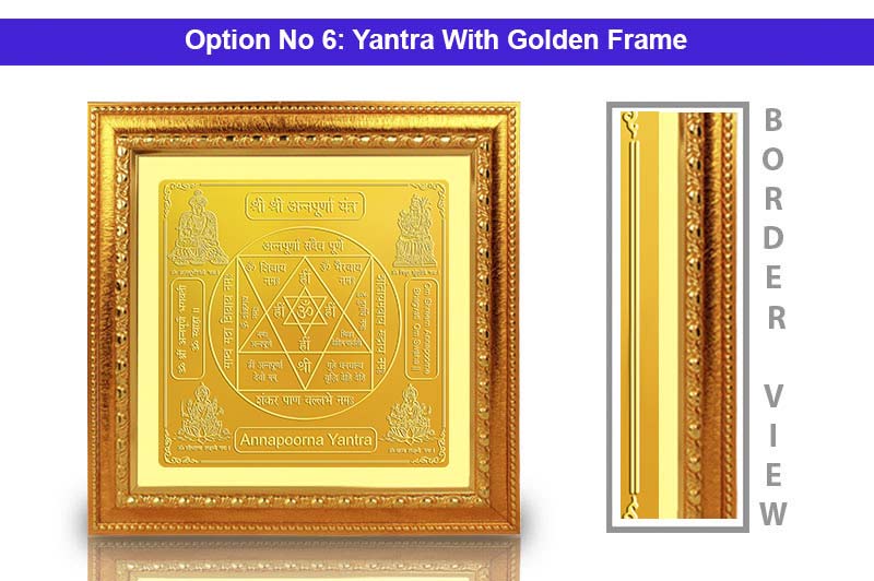 Annapurna is the goddess of food and nourishment. She is an avatar of Parvati, the wife of Lord Shiva. A few temples exist that are dedicated to her, some of them are Annapurna Devi Mandir and the Kasi Viswanath Temple in Varanasi. Since Akshaya Tritiya is the birthdate of the goddess Annapurna , the day is believed to be very auspicious for buying gold Jewellery. Keeping and worshipping Shree Annapurna yantra one will never have a shortage of food. Anna means food or grains. Purna means full, complete and perfect. Humans seek nourishment be it in the form of food or money, or in the form of spiritual nourishment, like cultivating a connection with the divine. It is Divine Mother Annapurna who gives this nourishment. Therefore Annapurna is known as The Goddess of Nourishment. When Yantra is worshipped, Mother Annapurna blesses Her children with Her divine nourishment. The Yantra products are delivered to the customers after proper energization & pran pratishtha. Therefore all the devotees are requested to forward their birth details, time & place of birth on email saligram8@gmail.com or whatsapp at 9322646421 while ordering yantra, so that the proper energization & pran pratishtha could be done on their names before the dispatch of the yantra.